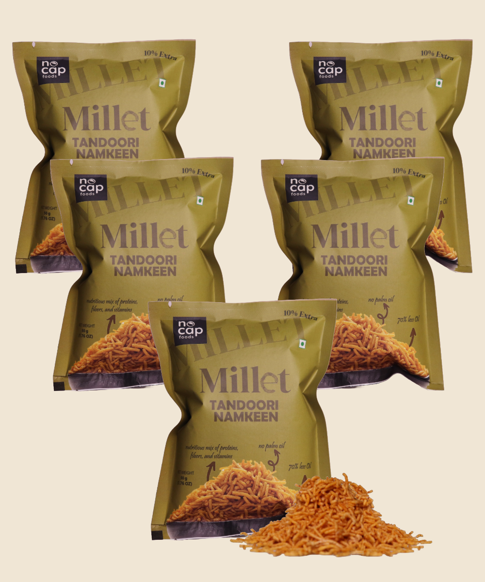 Discover the bold flavours of our Millet Tandoori Namkeen, crafted for those who relish a spicy, savoury snack without compromising on health. These crispy delights bring the rich, smoky essence of tandoori seasoning to every bite, creating a mouthwatering experience that excites your taste buds.Perfect for snacking anytime, this health-conscious treat delivers the vibrant taste of tandoori in every crunchy morsel. Elevate your snack game with a flavorful and wholesome twist!