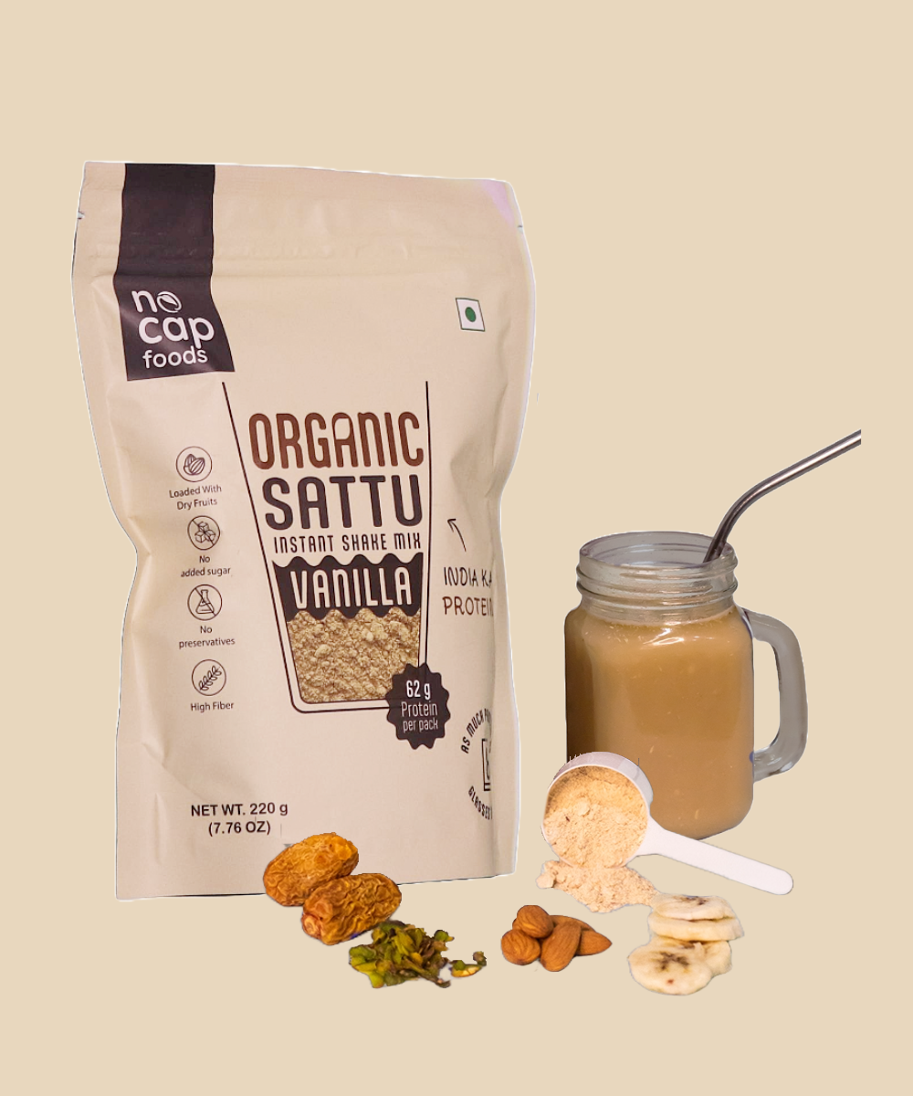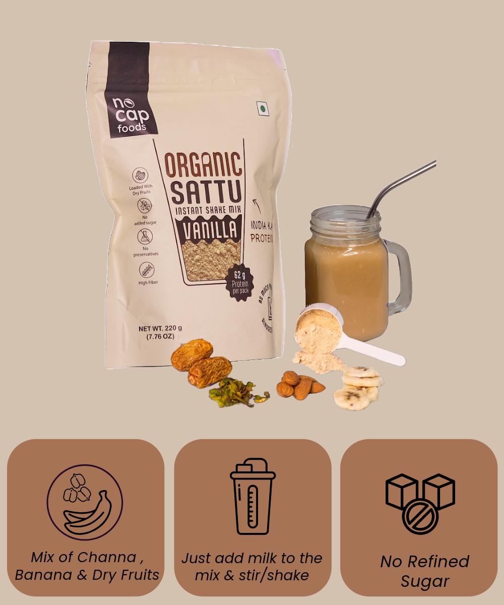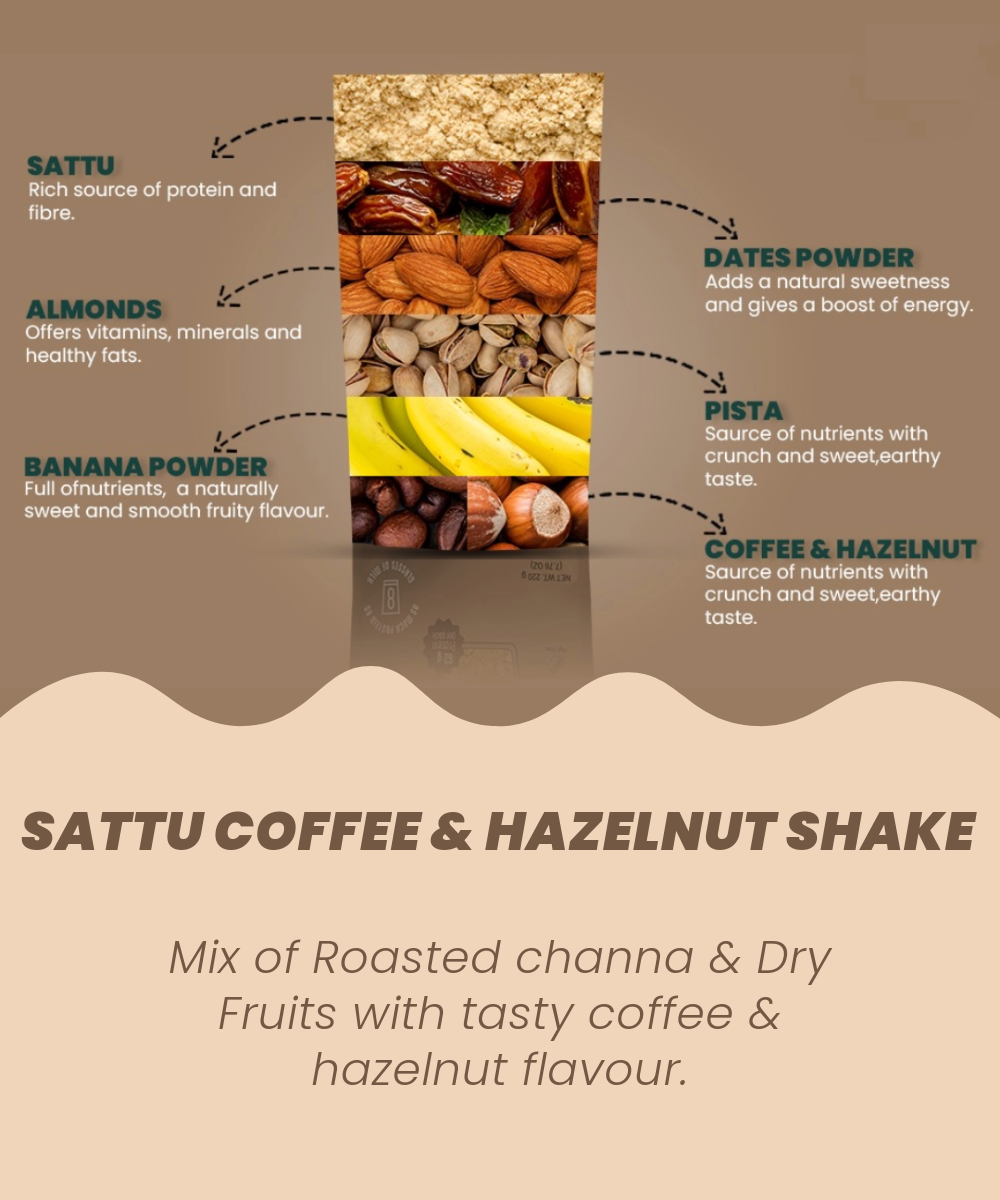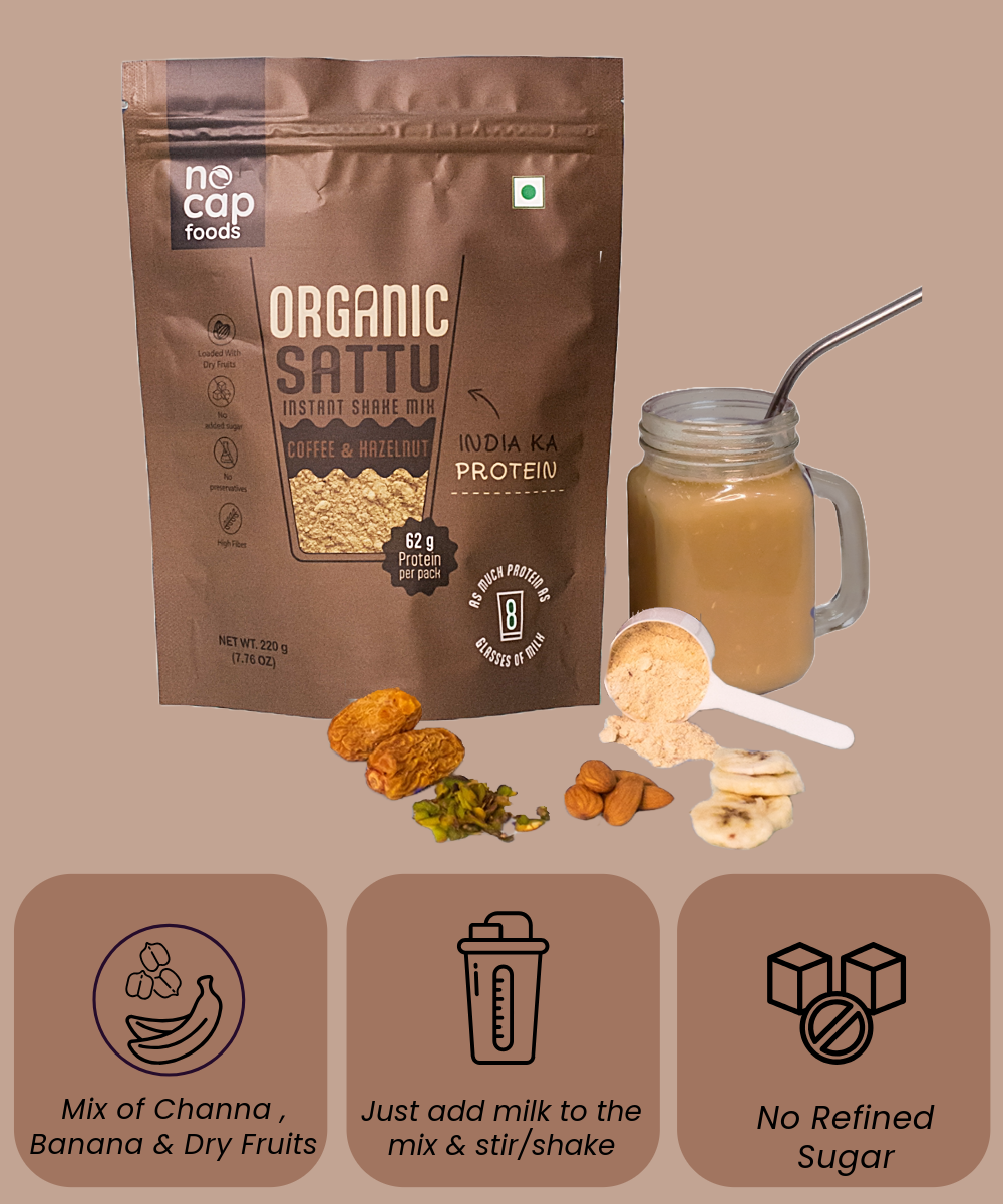 Indulge in the wholesome goodness of our NoCap Super Saver Healthy Sattu Shakes Pack! This delightful pack features the rich and aromatic Sattu Coffee Hazelnut Shake, combining the bold flavor of coffee with nutty hazelnut for a perfect energy boost. Complementing it is the smooth and creamy Sattu Vanilla Shake, offering a classic and comforting taste. Both shakes are packed with protein and nutrients, making them an ideal choice for a quick breakfast or a nutritious snack on the go. Enjoy the deliciousness while nourishing your body!