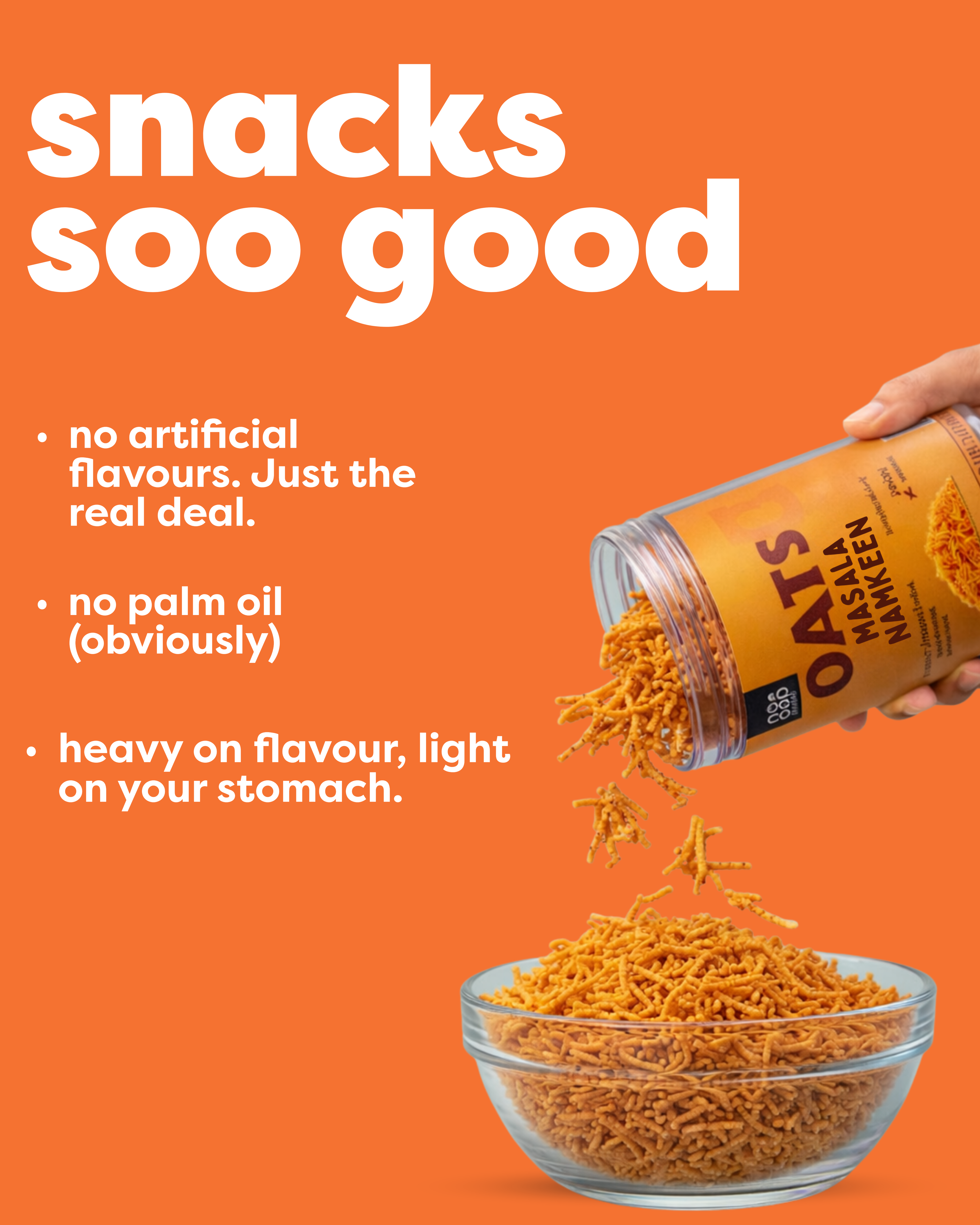 Indulge in crispy, fiery snacks with our Oats Peri-Peri Chips, where every bite brings a thrilling kick of heat combined with the wholesome goodness of oats. Perfect for those who crave both spice and nutrition, these chips deliver a tantalizing peri-peri flavor that keeps you coming back for more. Don’t miss the crispy Oats Namkeen, perfect for guilt-free snacking.Made with high-quality rolled oats, they offer a satisfying crunch while supporting a healthy lifestyle. Enjoy a snack that's as bold as it is nourishing—where heat meets health in every delicious bite!