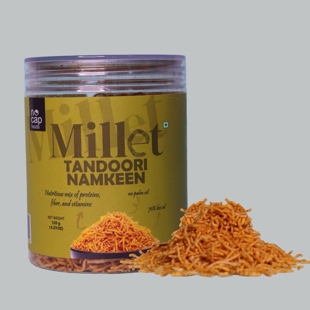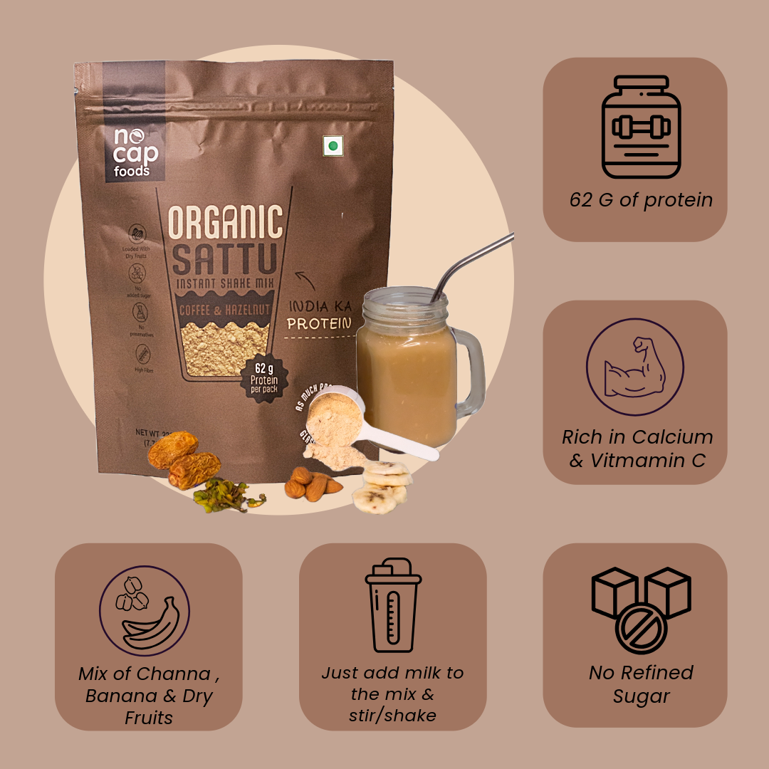 Transform your meals and snacking with our High Protein, Fiber-Rich Combo, featuring an exciting selection of nutritious products. Savor the bold flavors of our Millet Tandoori Namkeen, delivering a spicy crunch that satisfies your snack cravings while keeping health in mind. Indulge in our Sattu Coffee Shake, blending traditional protein with the sweet essence of coffee & hazelnut for a delightful treat.