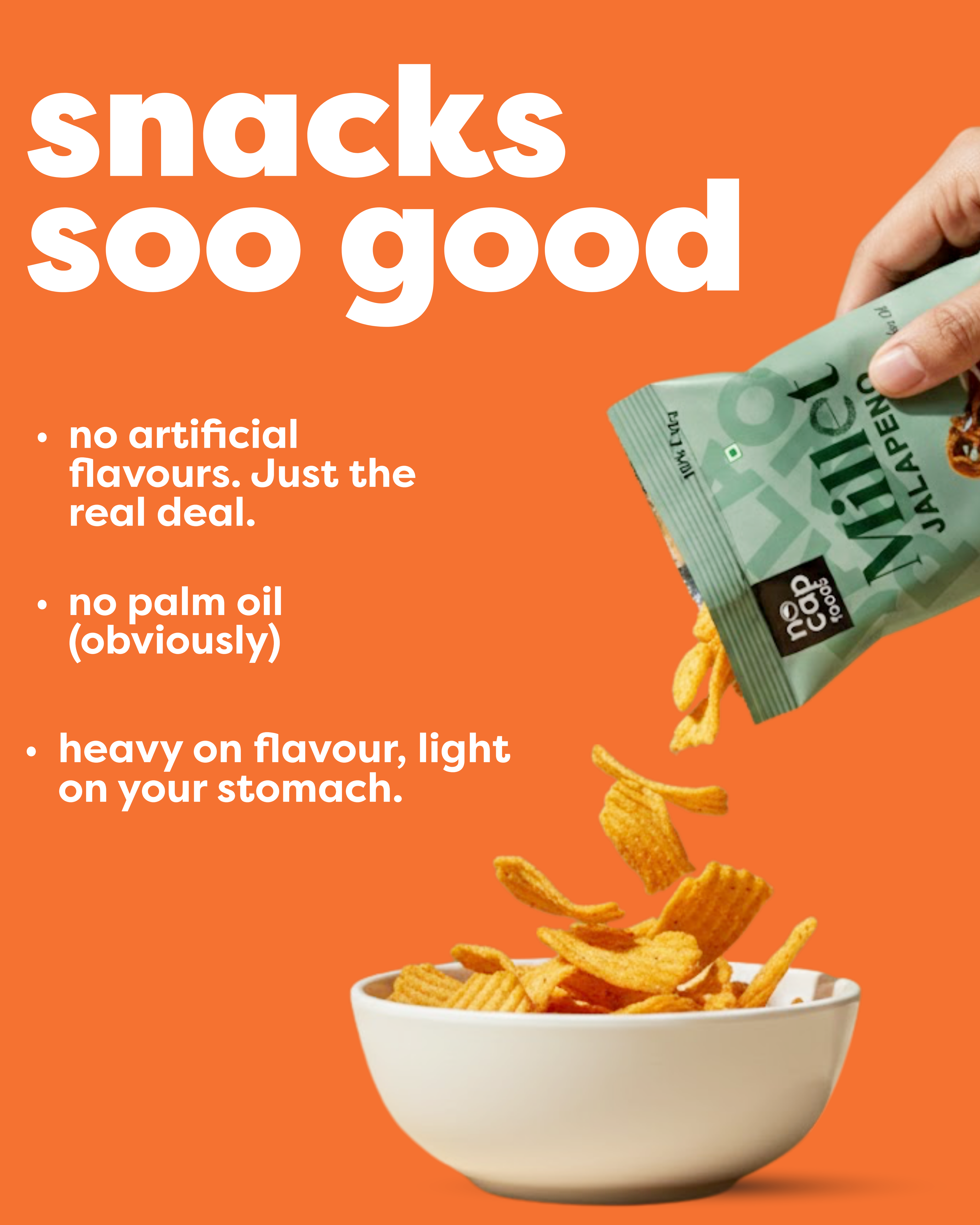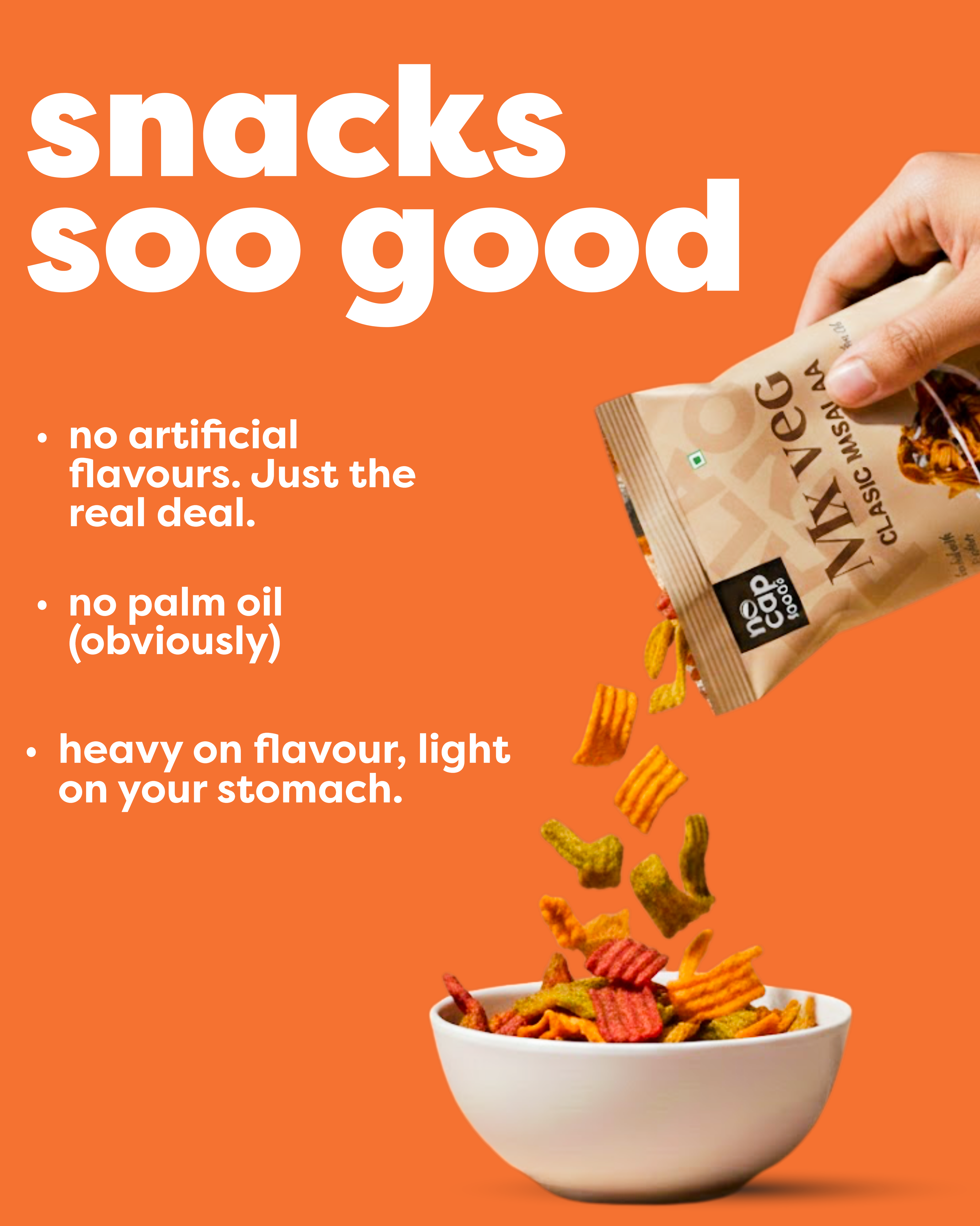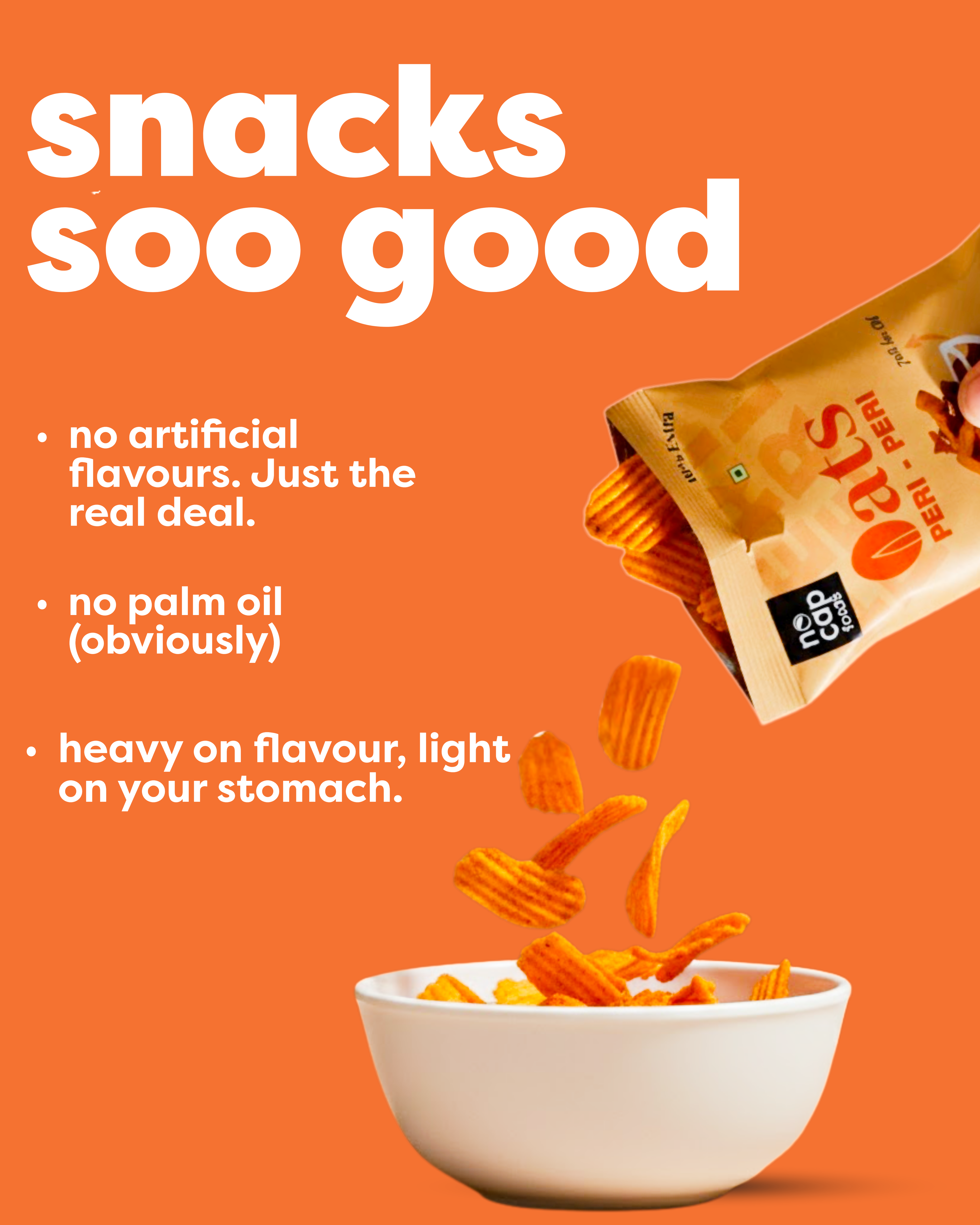 ● 70% less oil than regular snacking brands