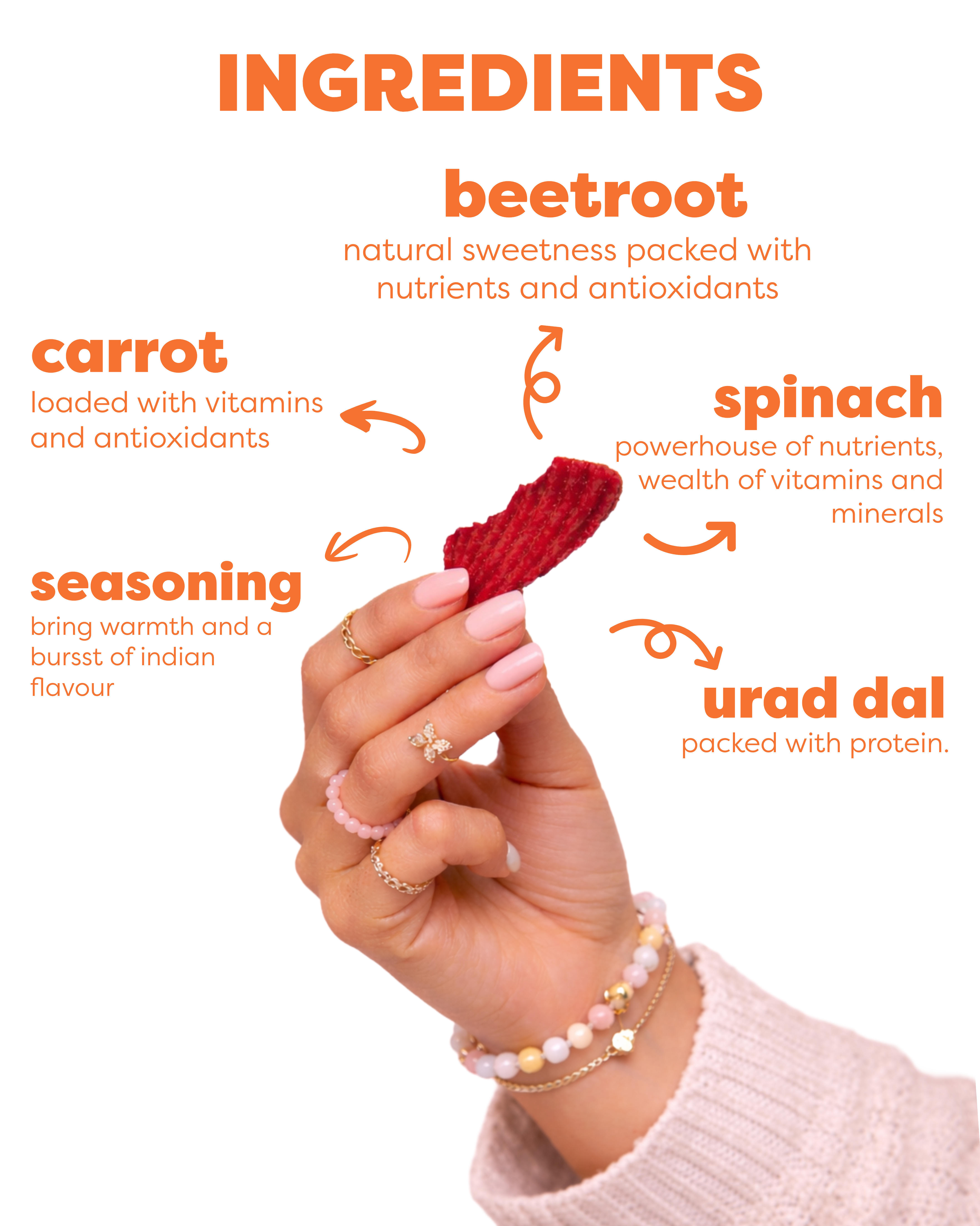 Elevate your snacking with our Ultimate Crunch Combo, featuring five delicious chip flavours (30gm each). Enjoy the Beetroot Cream & Onion Chips, where creamy onion meets sweet beetroot for a vibrant, nutritious snack. Crave heat? The Oats Peri-Peri Chips deliver a spicy kick combined with wholesome rolled oats. Experience bold flavour with the Millet Jalapeño Chips, offering a perfect balance of spice and health. Delight in the Mixed Veg Masala Chips, a savoury blend of beetroots, carrots, and spinach, seasoned to perfection. Finally, savour the Beetroot Masala Chips, where earthy beetroot meets aromatic spices. Each chip offers a unique taste adventure, making this combo perfect for sharing or enjoying on your own!