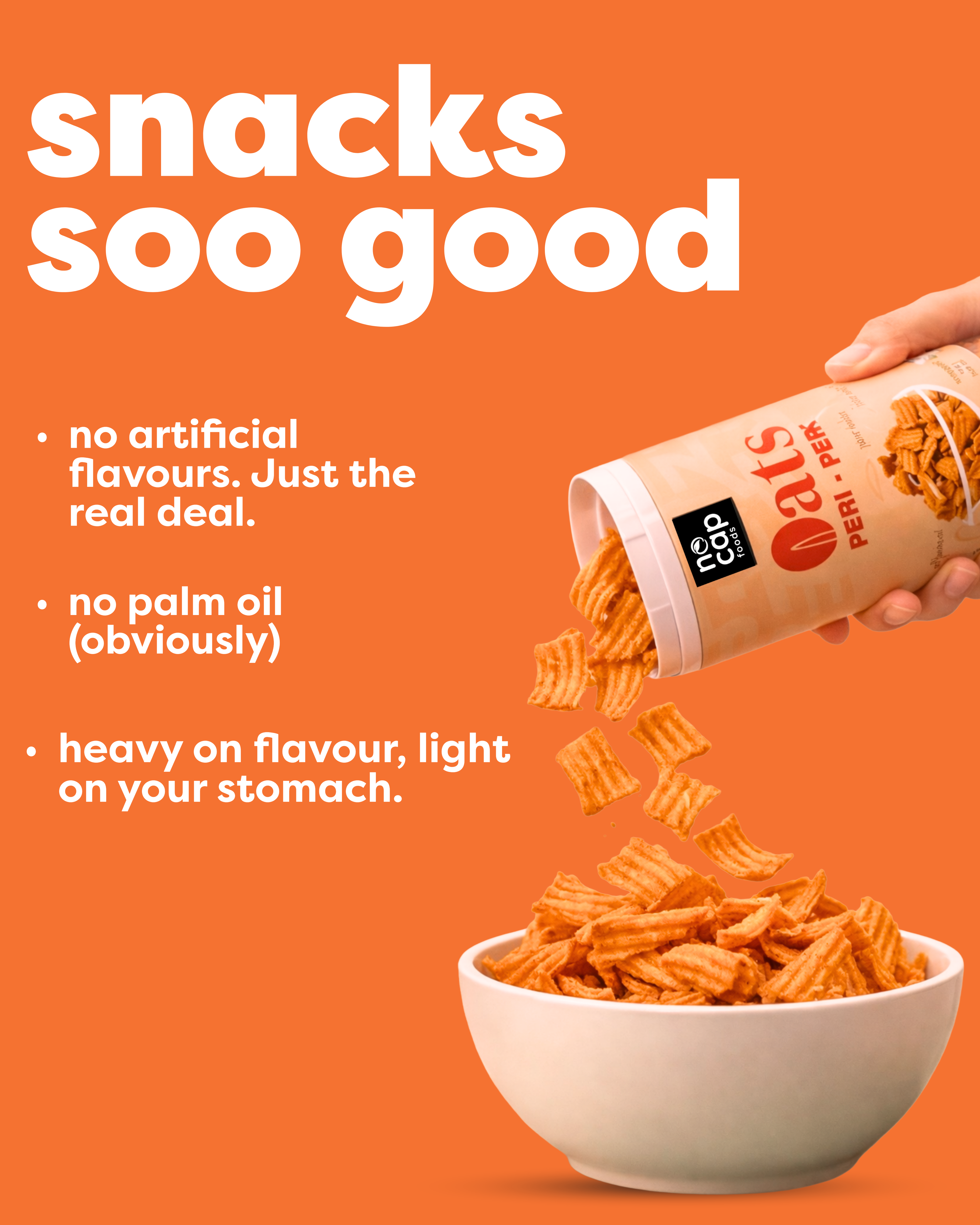 ● 70% less oil than regular snacking brands